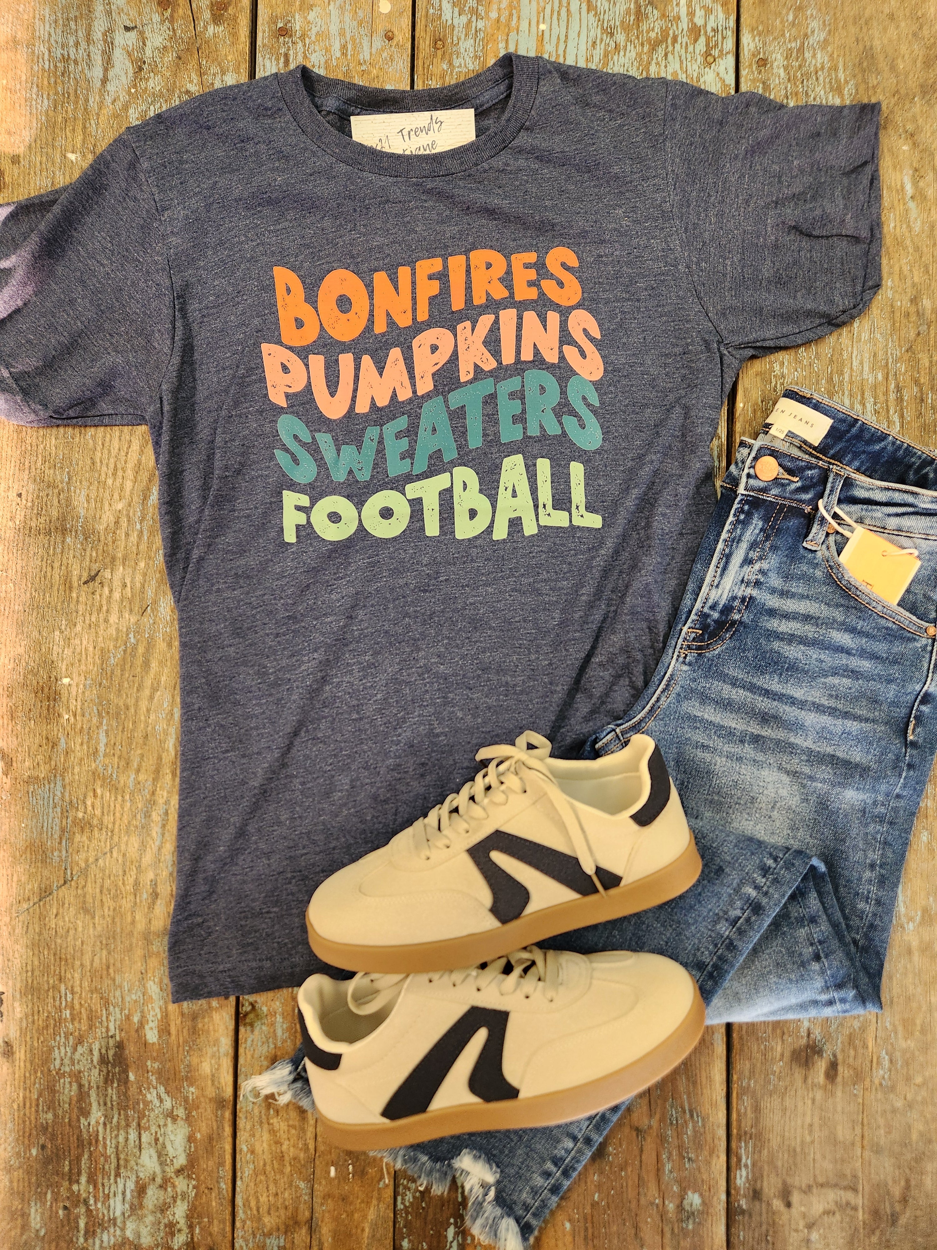 Bonfires Pumpkins Sweaters Football Graphic Tee
