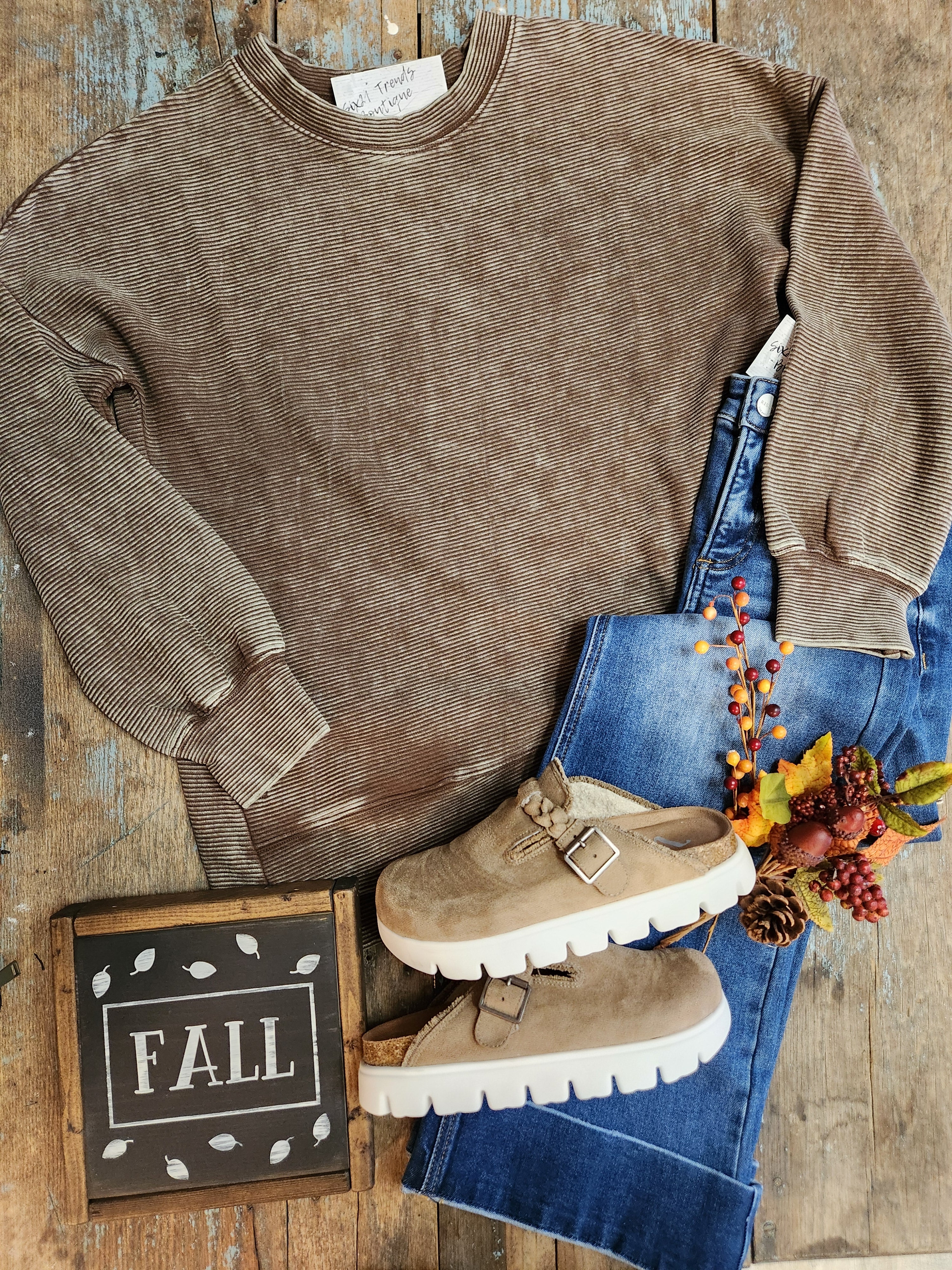 Acid Washed Double Ribbed Hi-low Pullover
