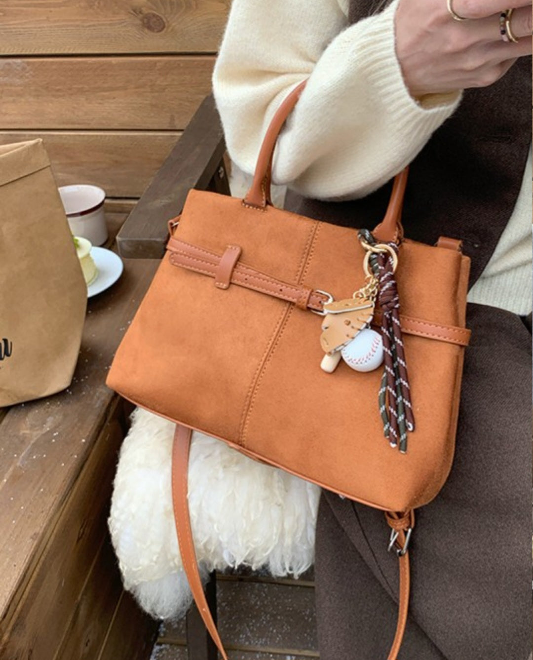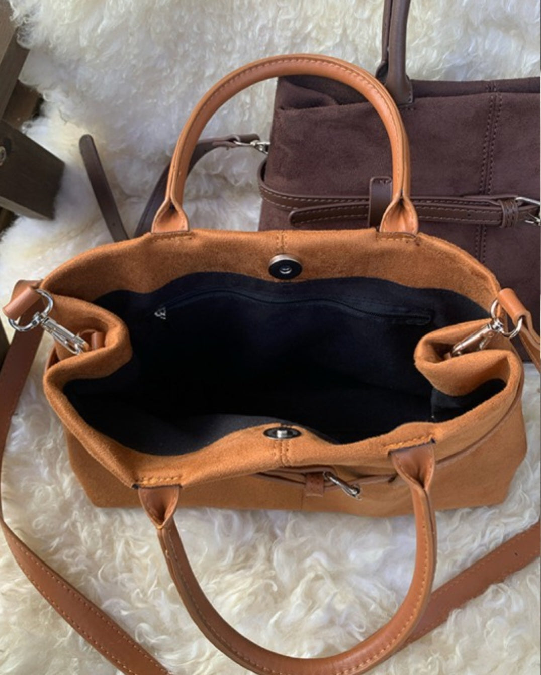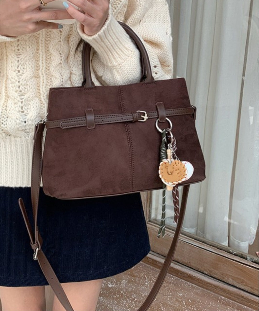 Faux Suede Hobo Tote Bag