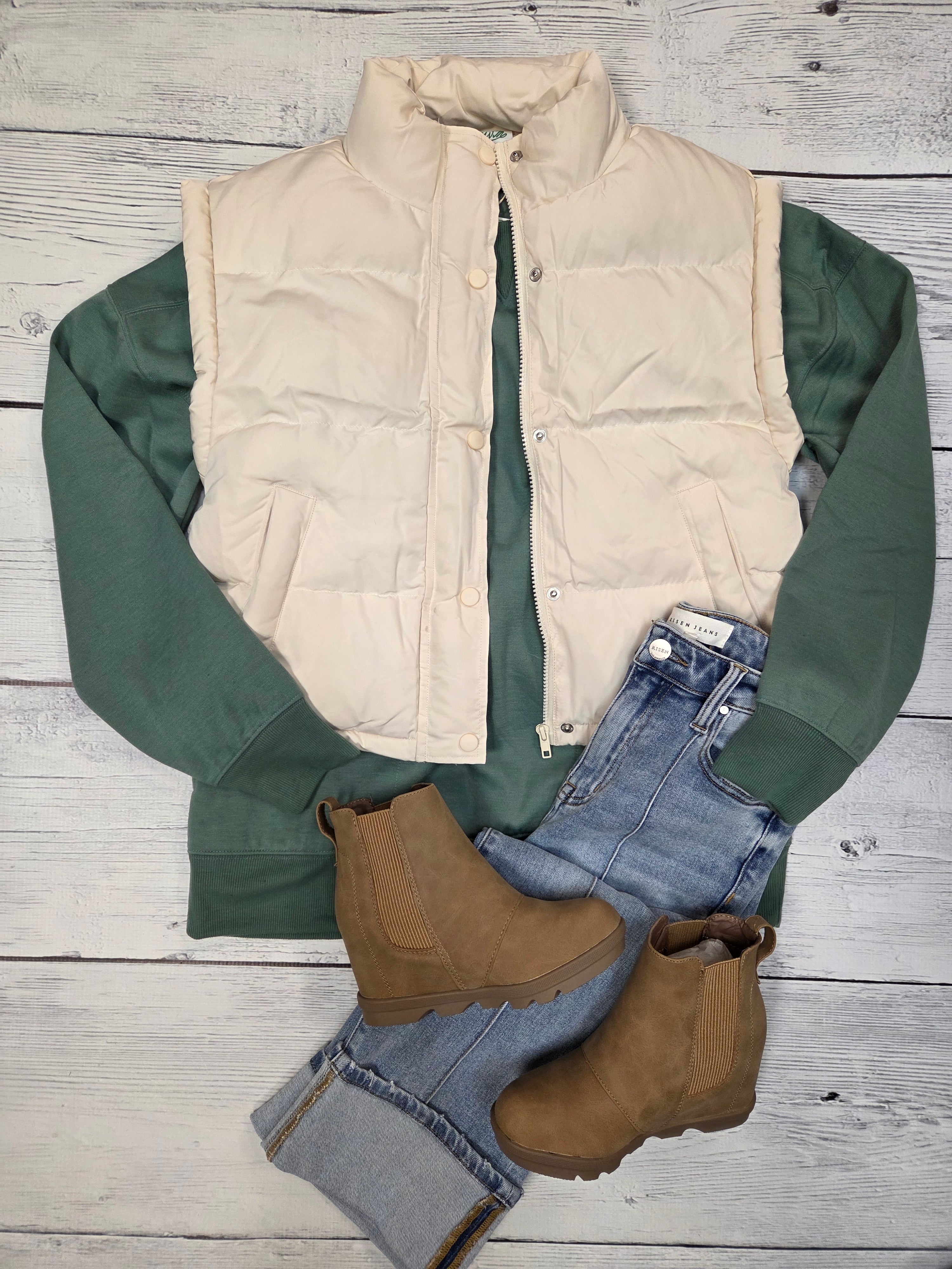 - Mock Neck Casual Puffer Vest - Button Down - Zip Up - Side Pockets