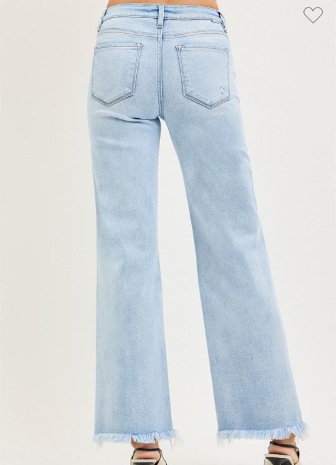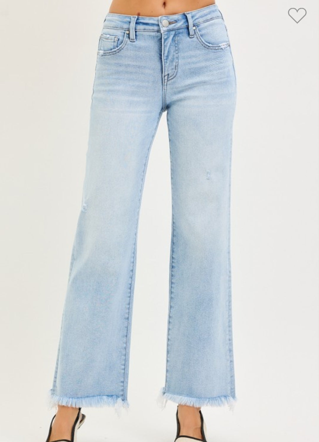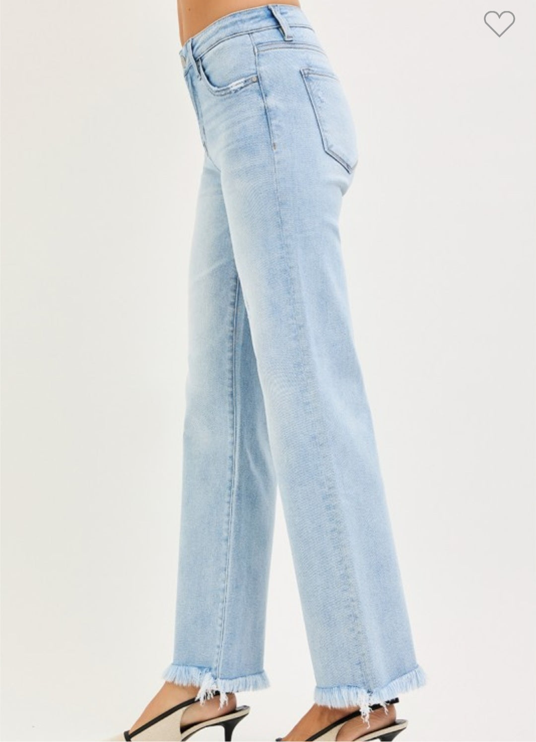 Risen Tummy Control Mid Rise Ankle Straight Fray Hem
