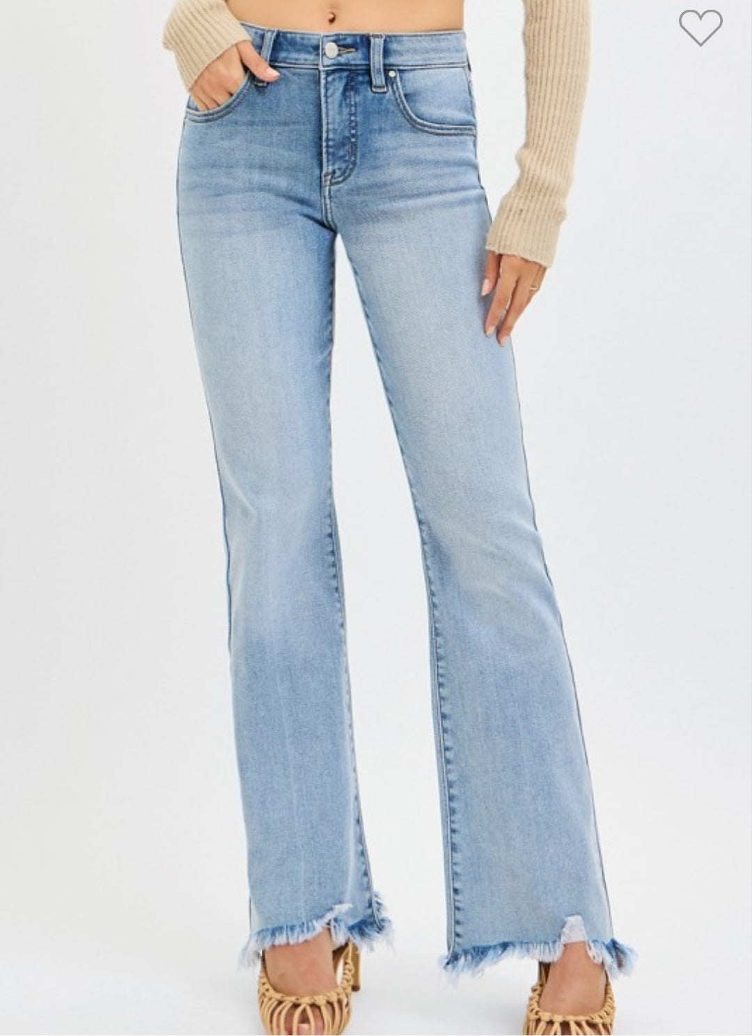 Risen Tummy Control Mid Rise Flare Hem Jeans